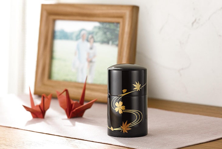明治10年創業の山中漆器の老舗 多田桂寛(ただけいかん)の伝統工芸師たちの手により、ひとつひとつ丹念に仕上げられた本漆天然木のミニ骨壺です。